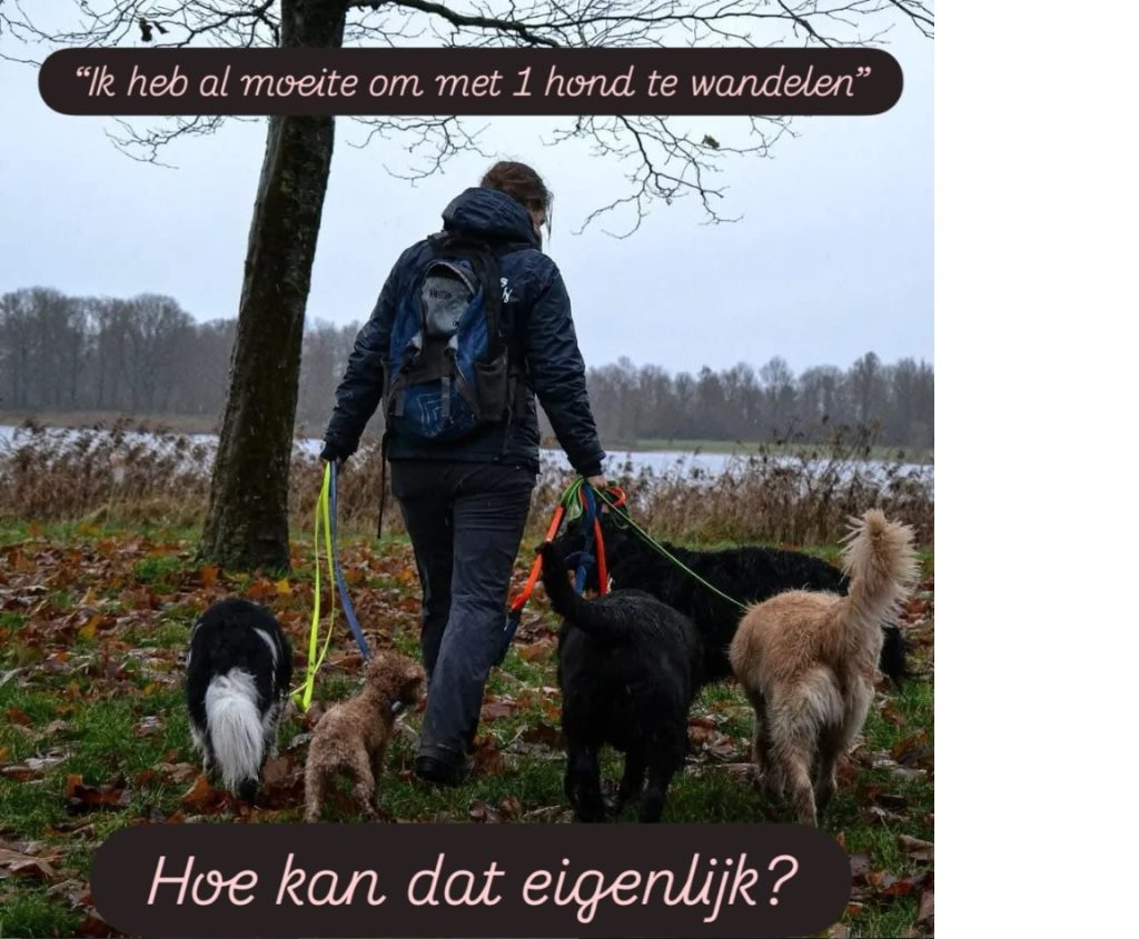 Een veel gehoorde opmerking wanneer ik met meer honden aan lijn liep. “Ik heb al moeite om met 1 hond te wandelen..”